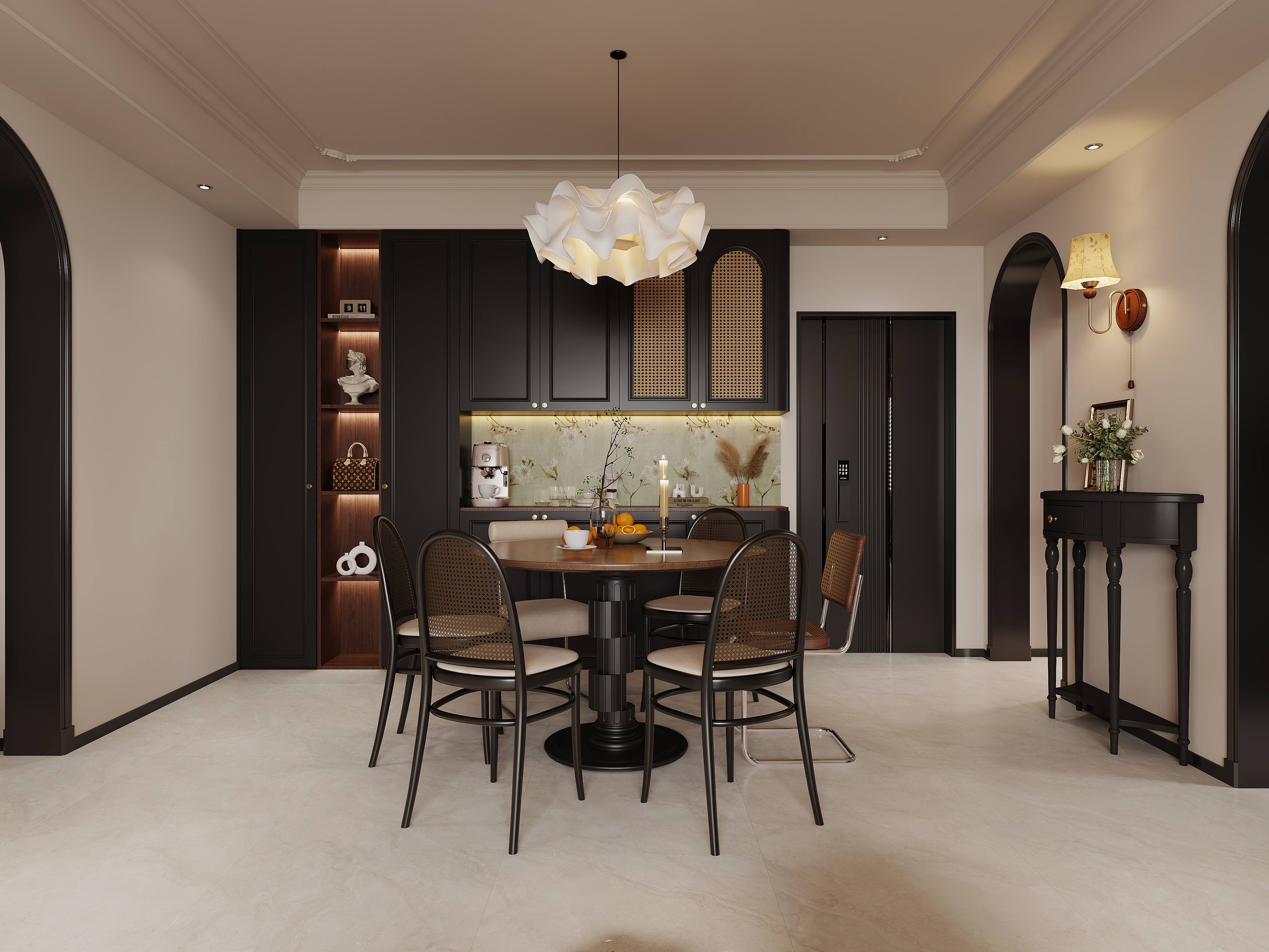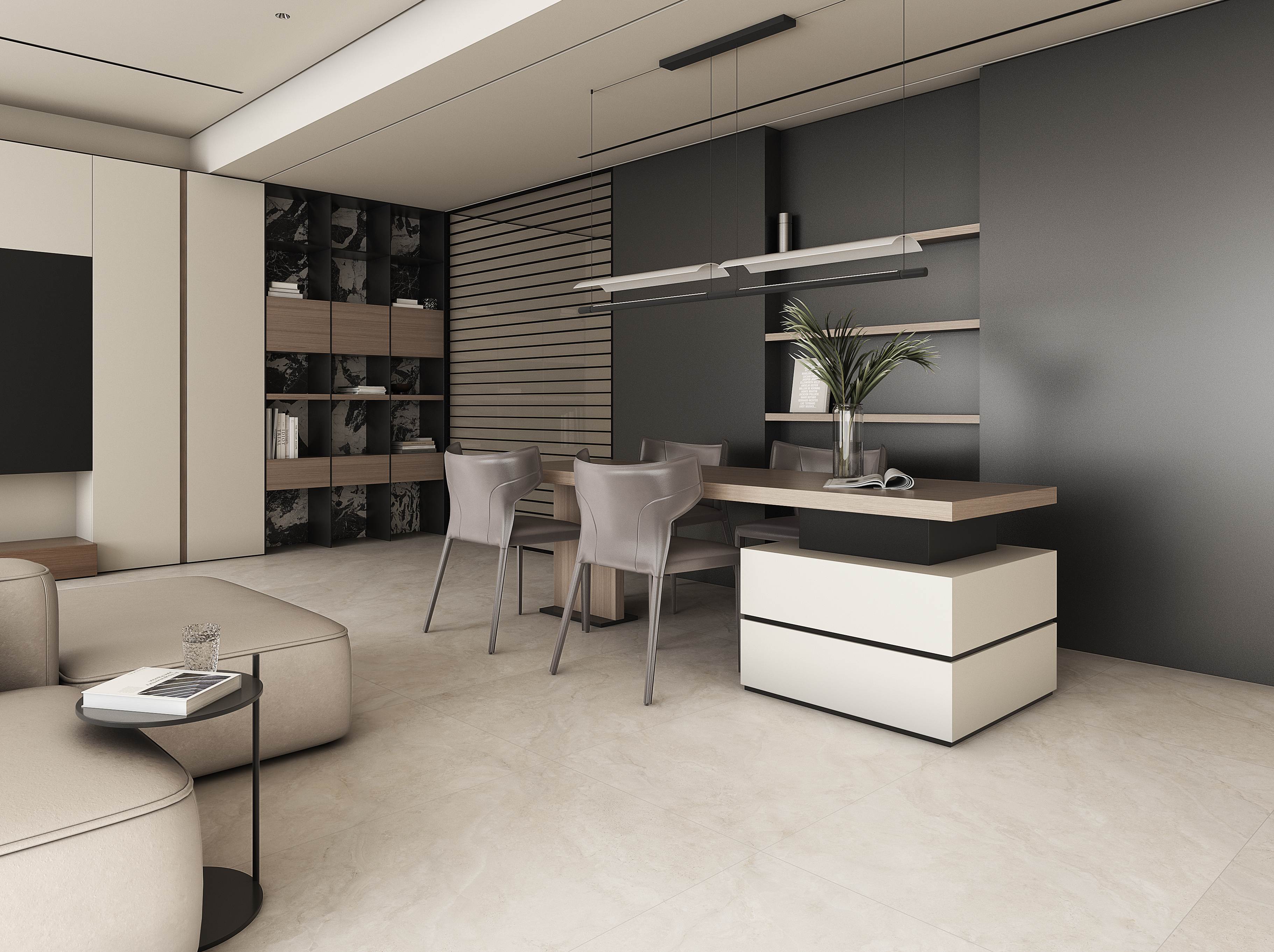 云雾状孔洞肌理融合玉石温润,防刮耐磨性能拉满,玄关高频踩踏不显痕,让进门第一眼即是「低调的奢华」。